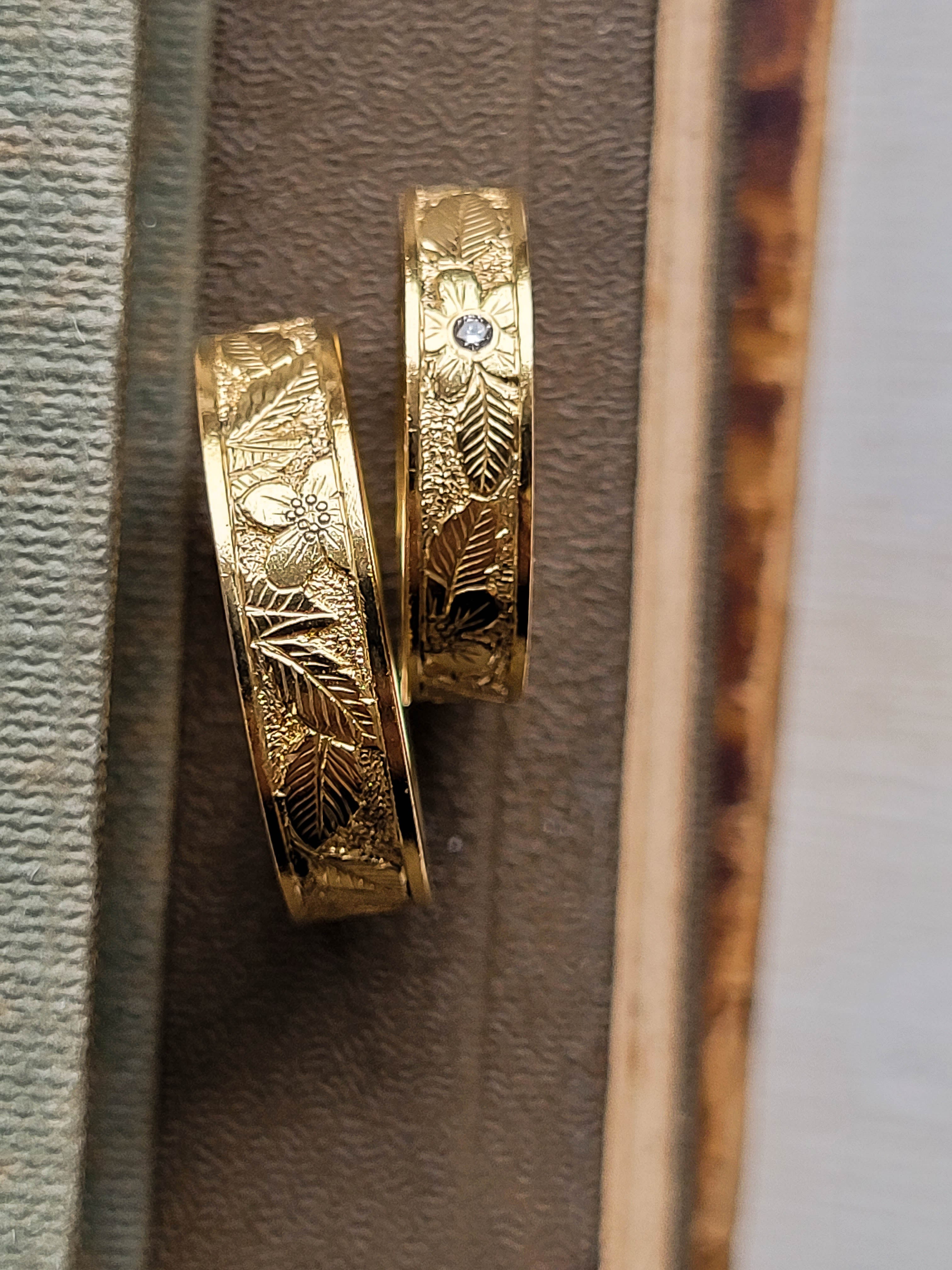 El proceso lo hacemos muy en conjunto con cada pareja, con el objetivo de llegar al resultado que más los represente. ¡Se puede escoger el metal y las piedras que prefieras!