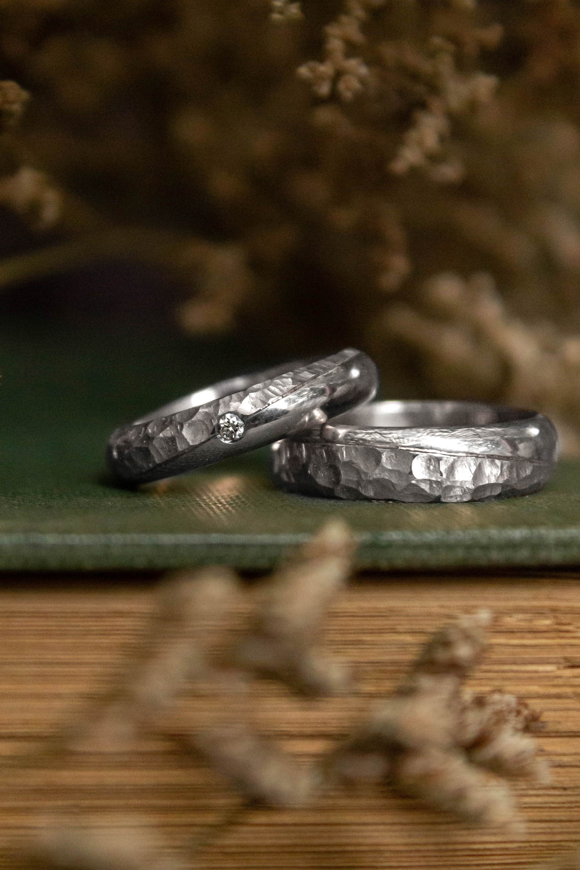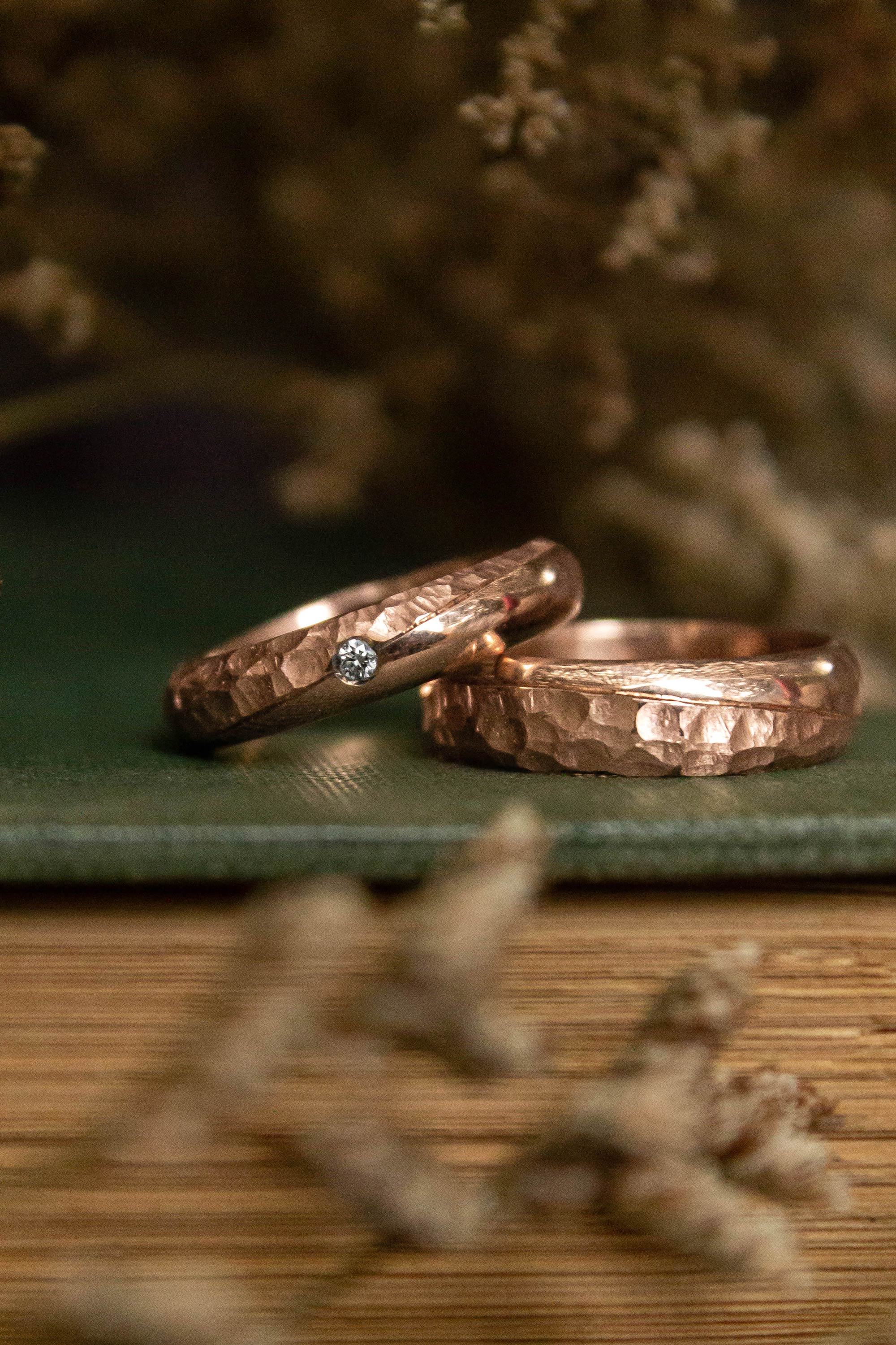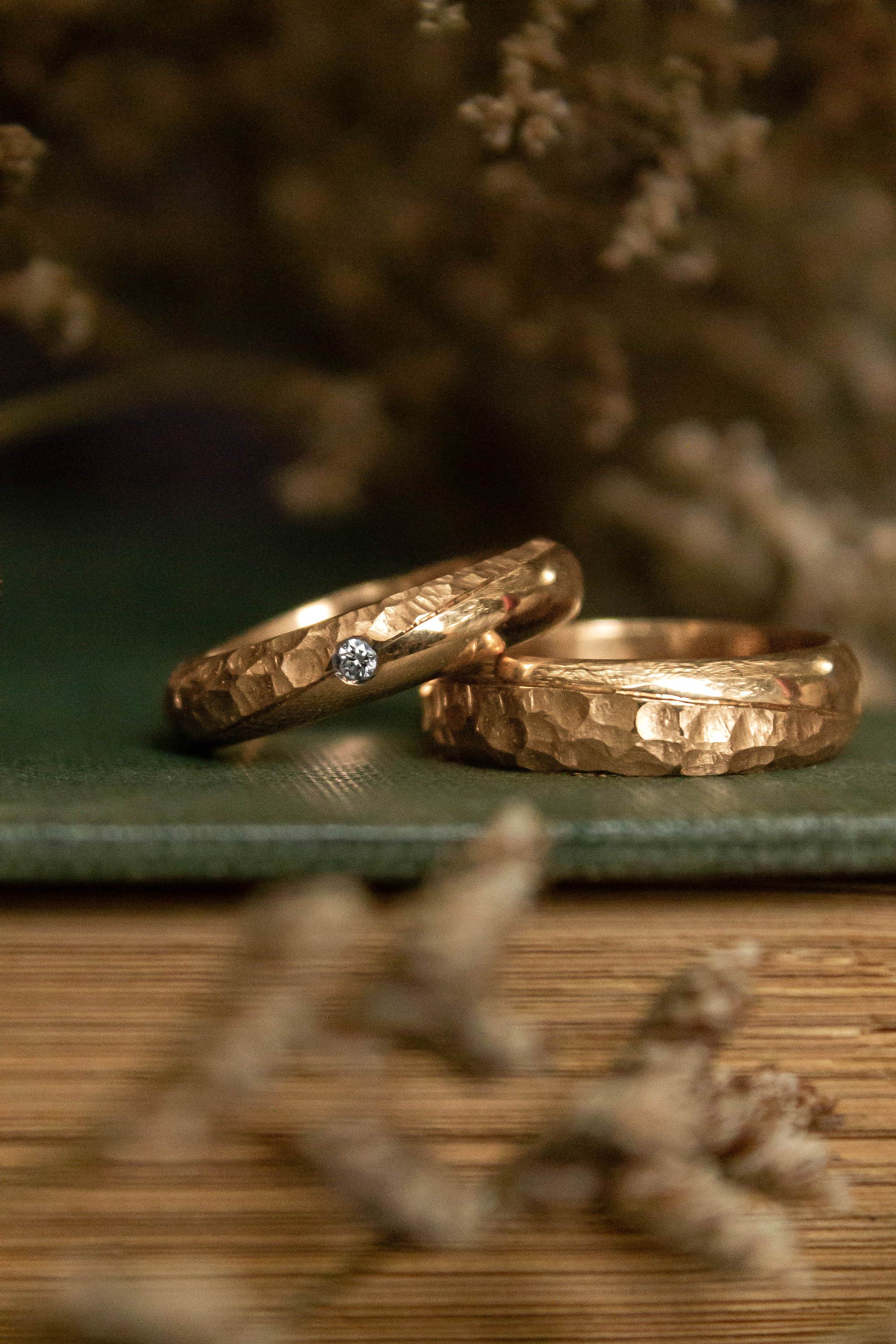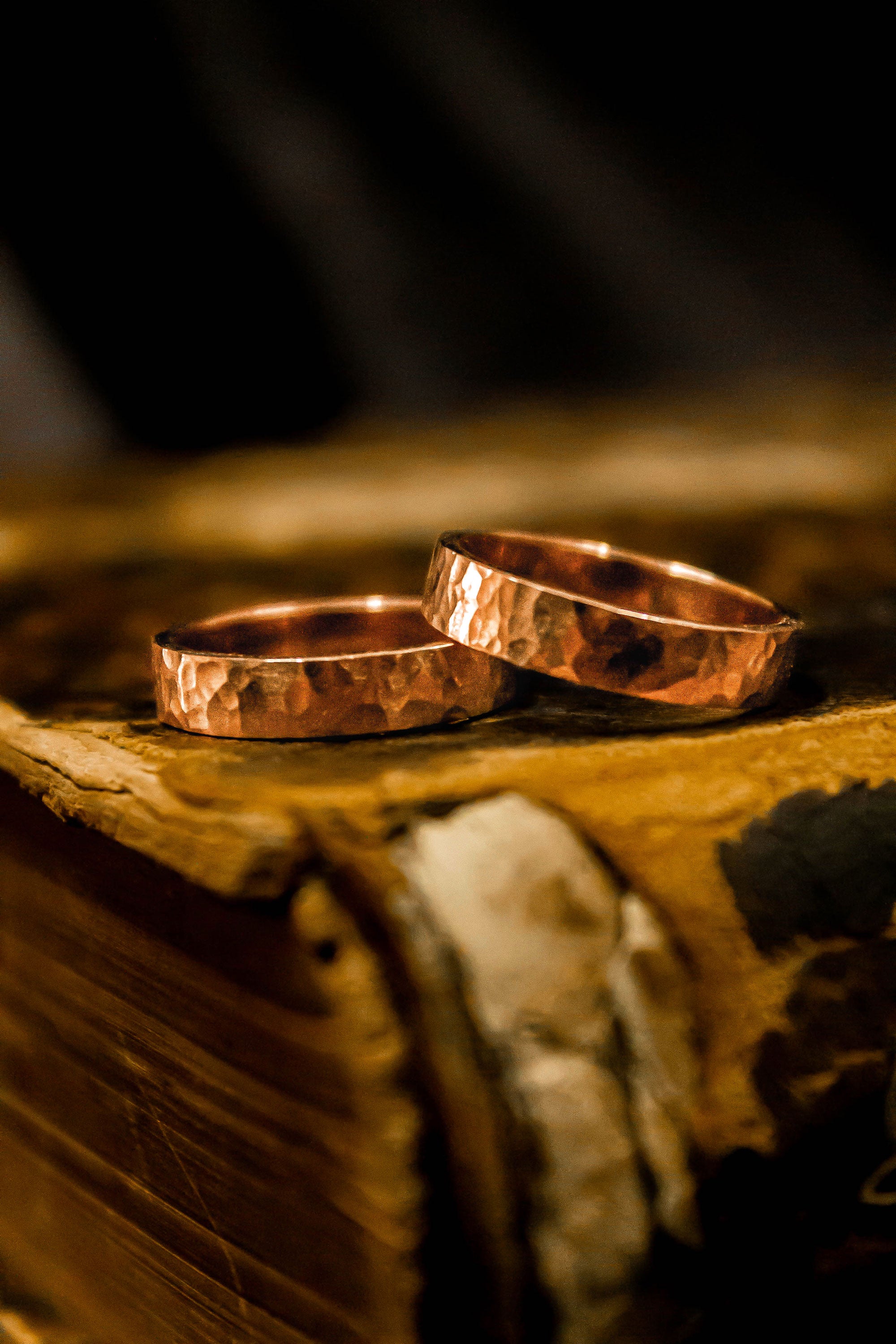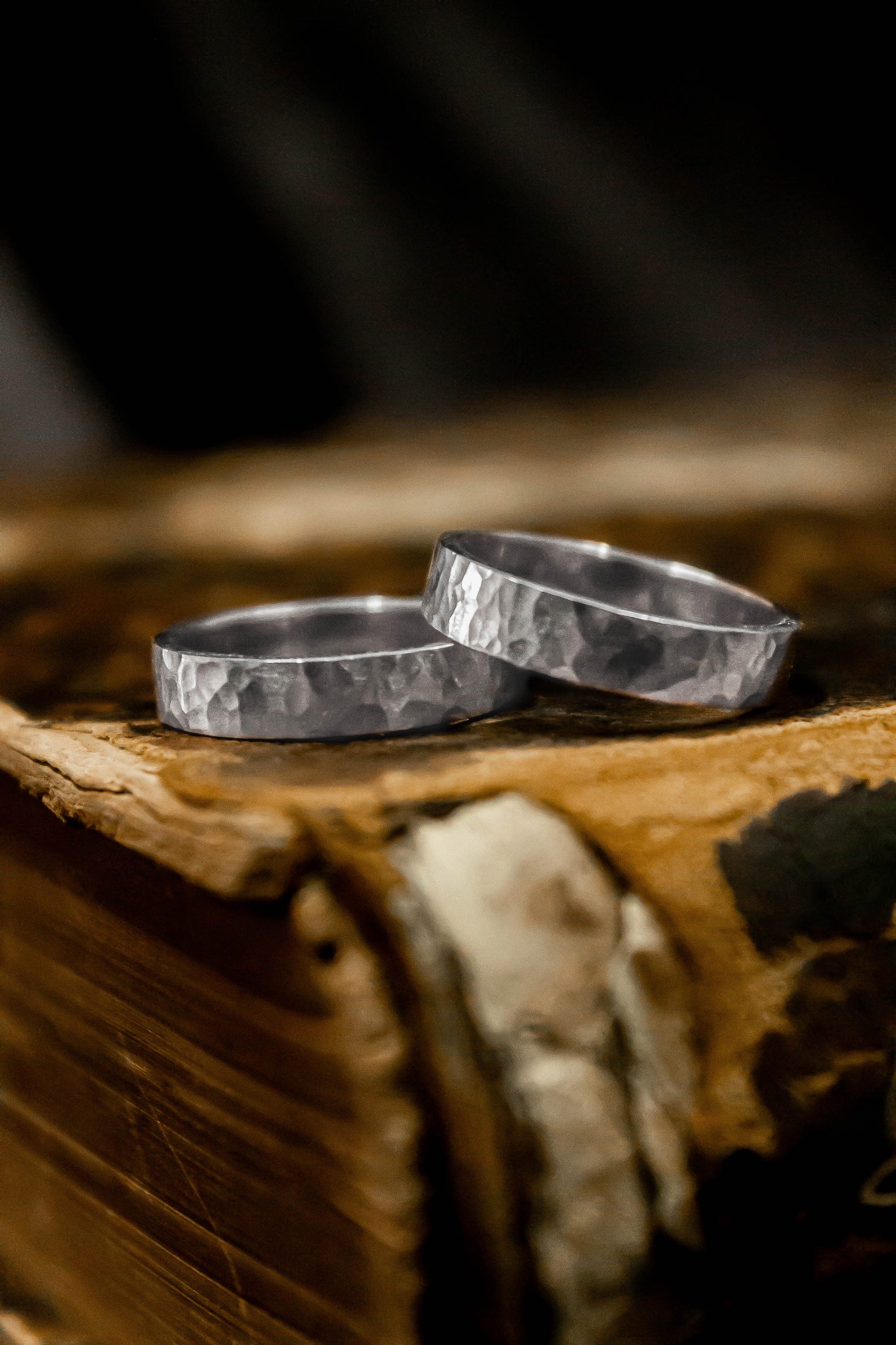 Argollas con textura martillada, que se consigue martillando la parte superior del anillo y dejando marcas, pero manteniendo el interior liso y pulido.