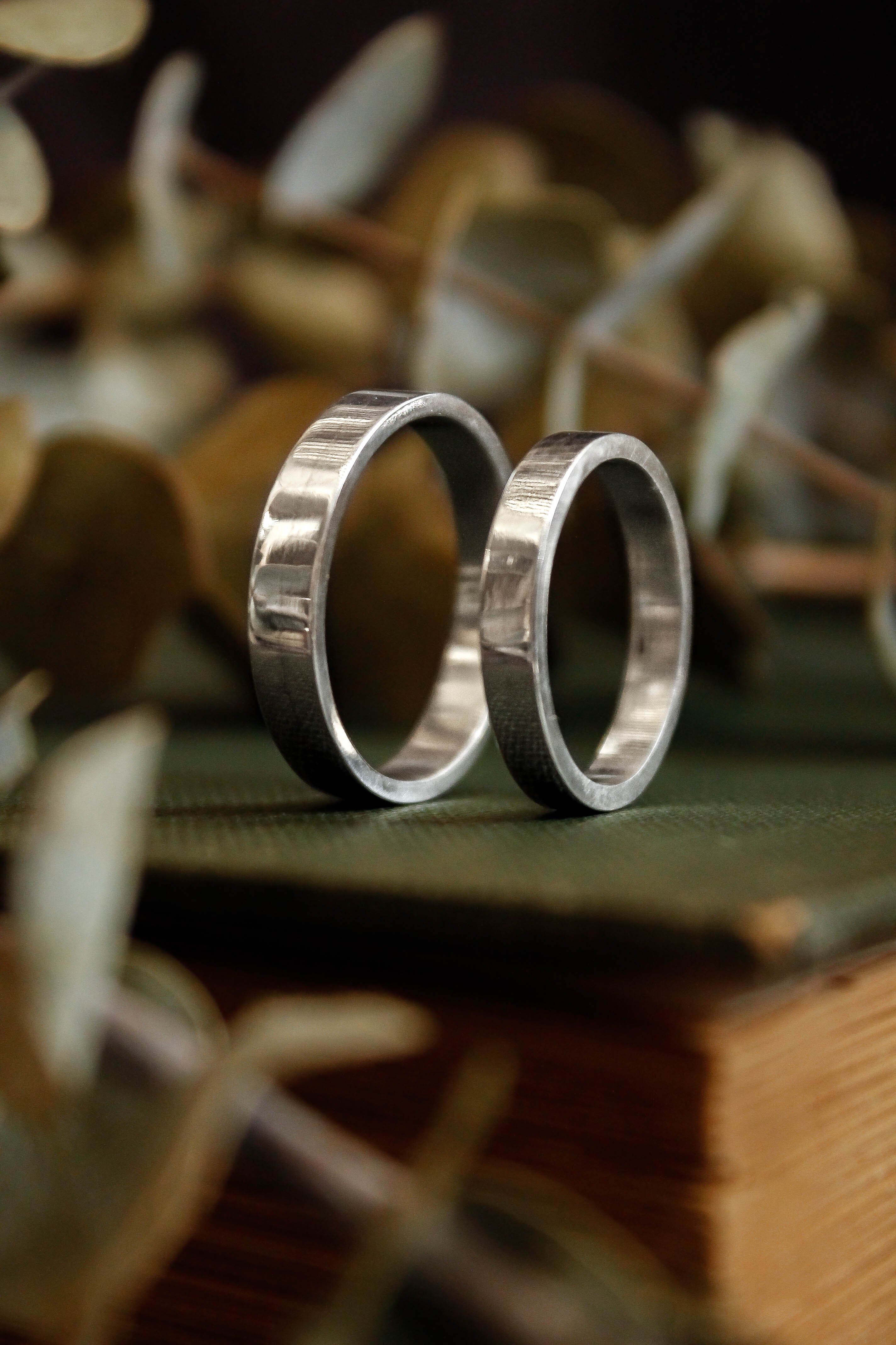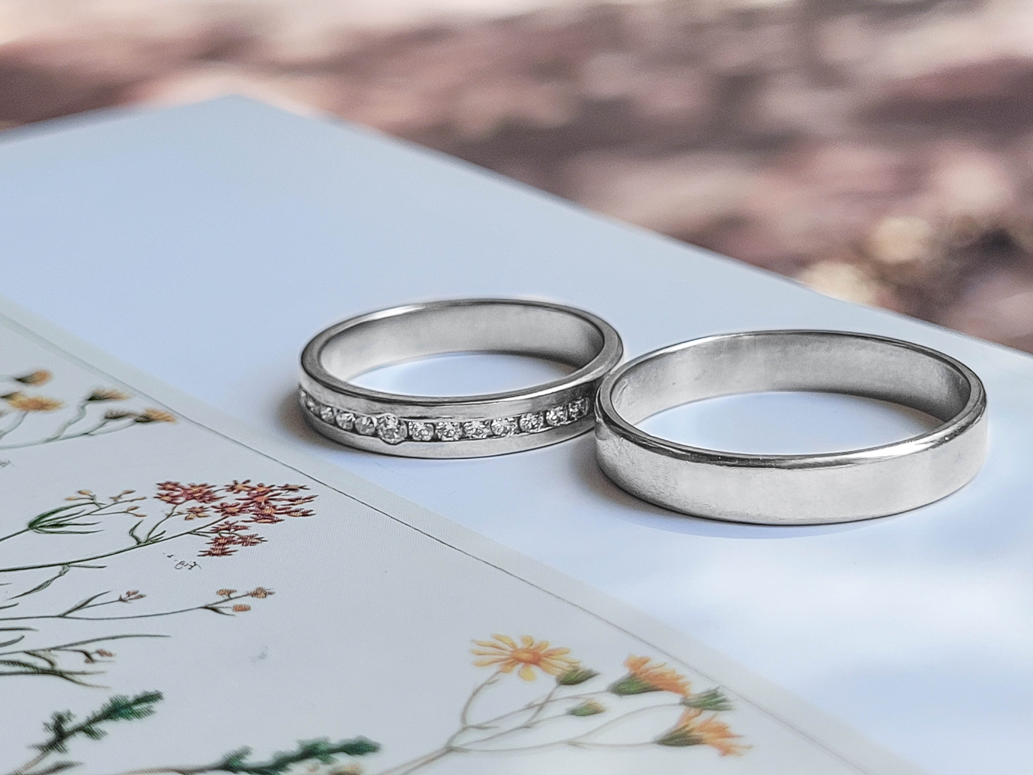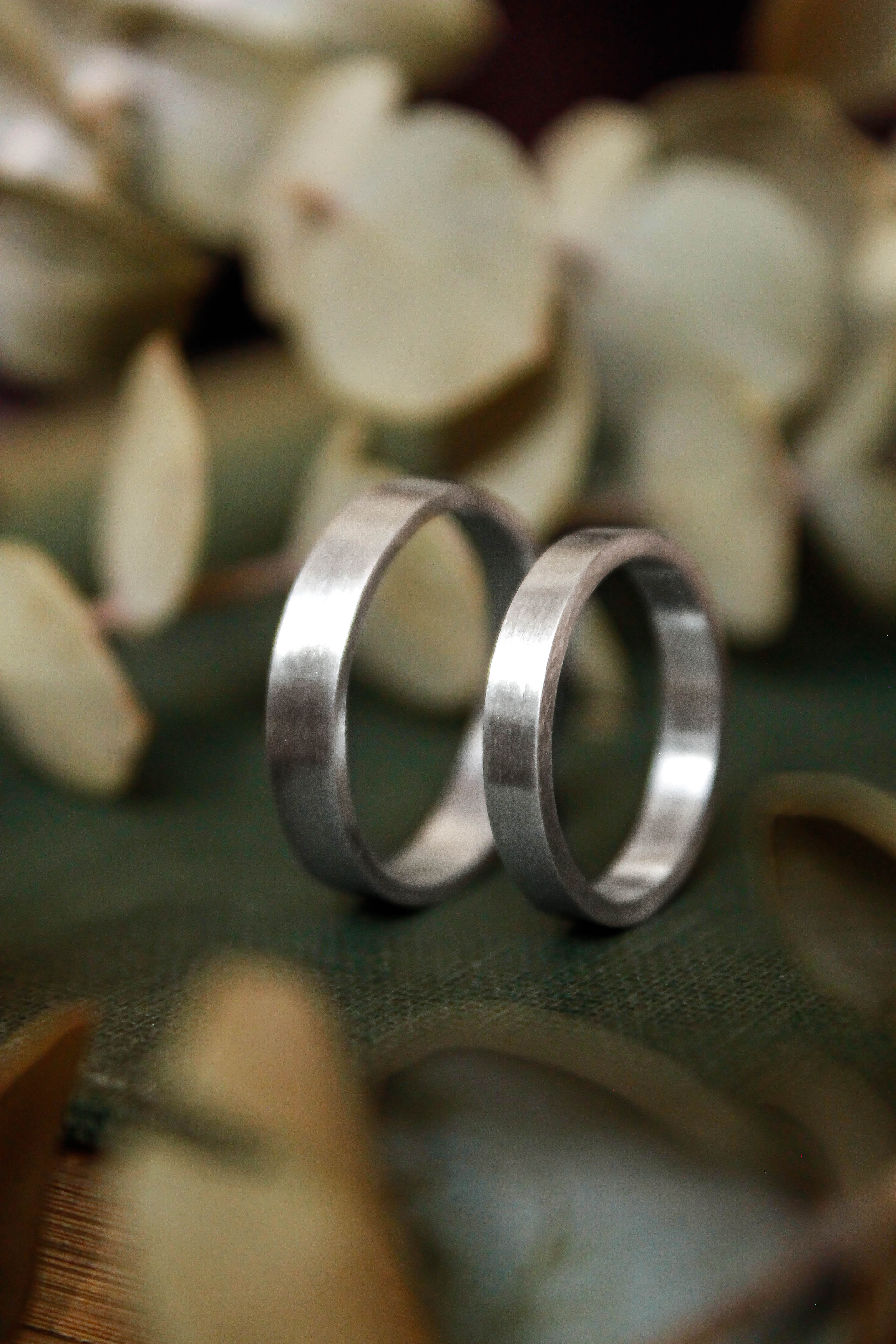 Trabajamos las argollas en todos los metales nobles: Oro amarillo, en tono miel o tono clásico, también oro rosa. Para quienes les gusta un metal más “blanco” trabajamos oro blanco y platino, en el caso del oro blanco, este metal es más oscuro, más gris, es por eso que se da un baño de rodio al terminar el trabajo. También realizamos argollas en plata.